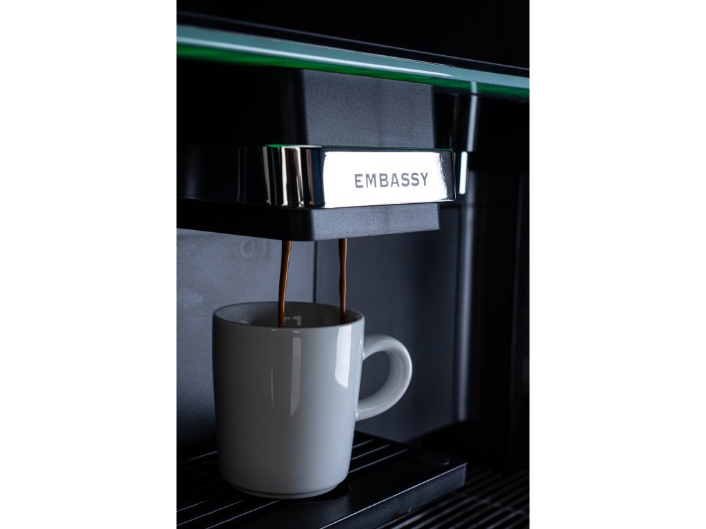 Embassy Bogota je profesionální automatický kávovar pro přípravu 200 káv denně. Je vybaven připojením na vodovodní řád, čtyřlitrovou vodní nádržkou, dvěma mlýnky a automatickým mléčným systémem pro tvorbu mikropěny o teplotě až 70 °C. Kávovar je kompatibilní s platebními systémy, jeho ovládání probíhá pomocí desetipalcového dotykového displeje, a jeho rozhraní je lokalizováno do českého jazyka.
