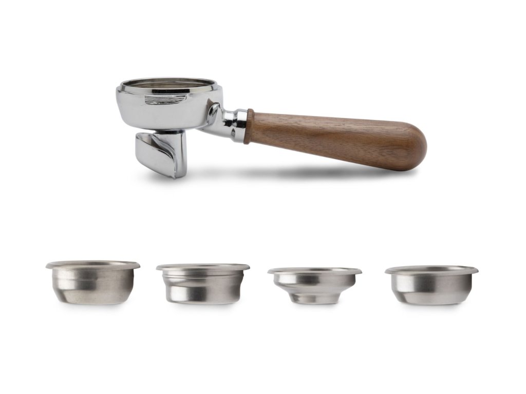 Páka - dvojvýpusť s ergonomickou rukojetí z ořechového dřeva. Tvar výpusti je navržen tak, aby nedocházelo ke kontaktu s pracovní plochou. Balení obsahuje nerezový IMS košík na jednu dávku XL (9-11 g), dvě dávky (14-18 g), dvě dávky XL (18-21 g) a slepý košík. Kompatibilita: všechny kávovary s hlavou LELIT58.