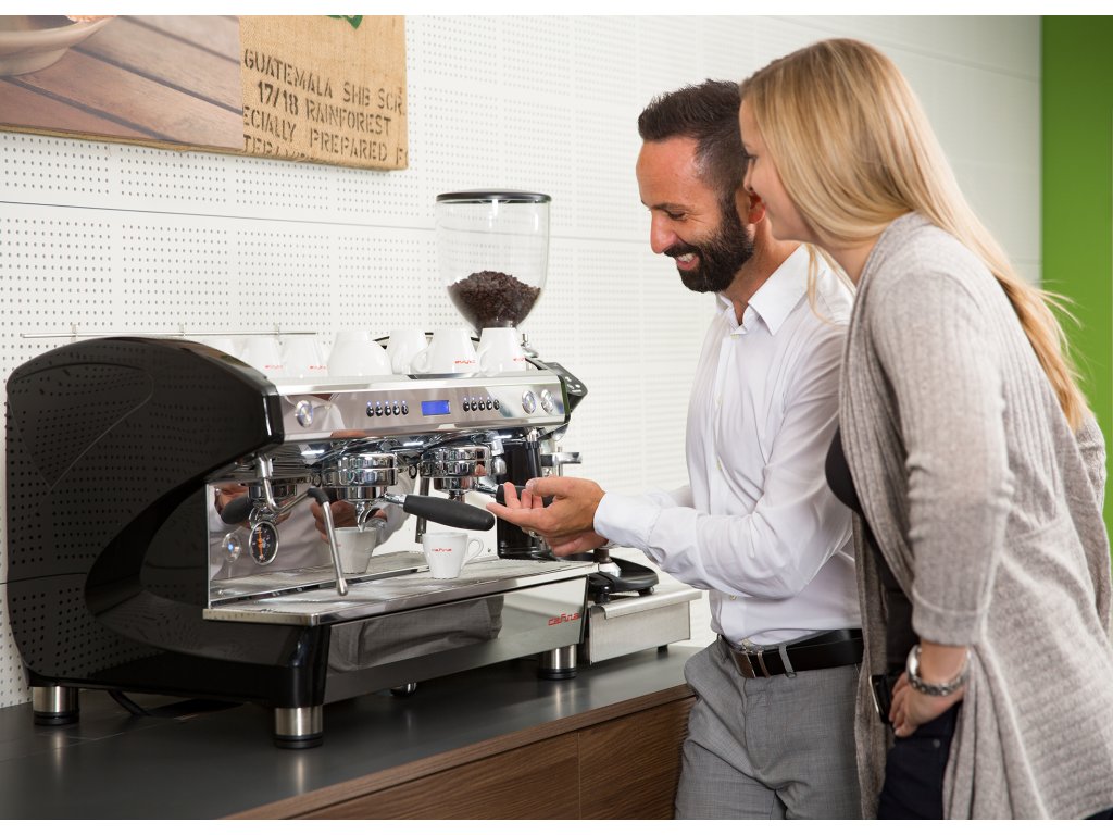 Profesionální dvoupákový kávovar s PID systémem a nerezovým bojlerem o objemu 10,5 litrů.