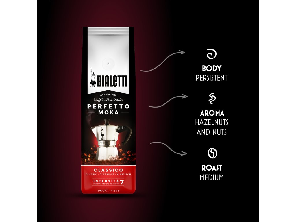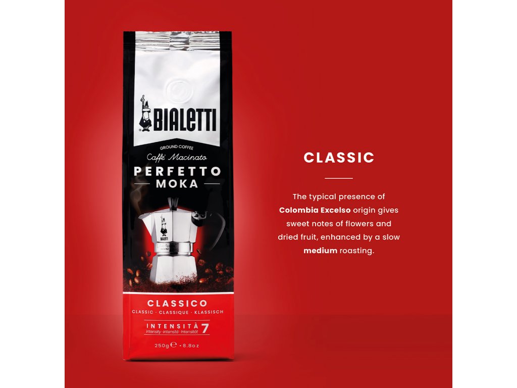 Chuťovo vyvážená stredne pražená mletá káva. Prítomnosť odrody Colombia Excelso káve prepožičiava vôňu kvetov a sušeného ovocia.