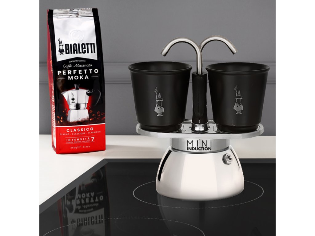 Set Mini Indukce je originální alternativou běžných moka konviček, jež kombinuje totožnou technologii přípravy kávy s neotřelým designovým řešením ve stylu miniaturní fontánky.
