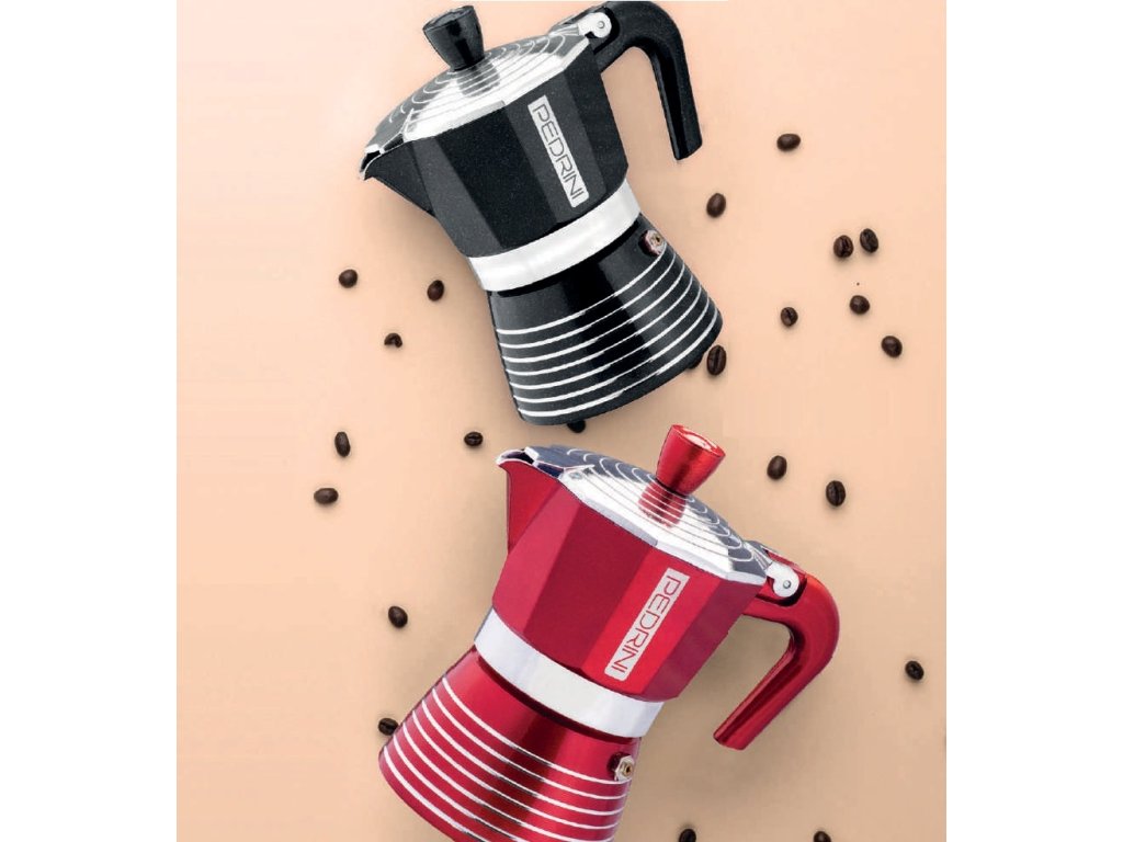 Dizajnová moka kanvička z potravinárskeho hliníka. Rukoväť kanvičky je zhotovená zo špeciálneho termoplastu s približnou tepelnou odolnosťou 210 °C. Kanvička je natretá žiaruvzdornou trblietavou glazúrou a zdobia ju kruhové obrazce.